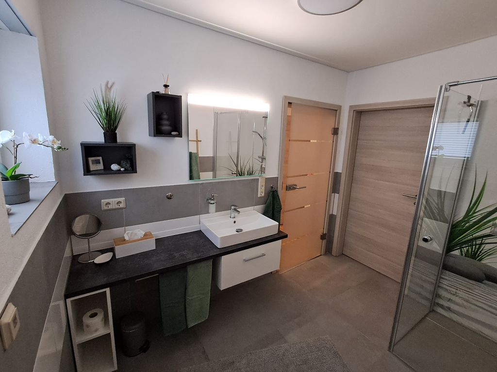 Das Badezimmer mit begehbarer Dusche sorgt für zusätzlichen Komfort.