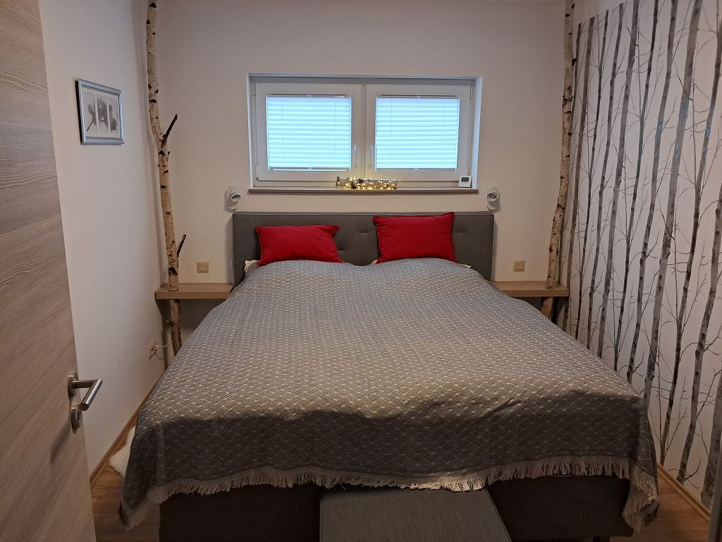 Das Schlafzimmer der Wohnung ist mit einem gemütlichen Boxspringbett (180 x 200 cm) ausgestattet, das nicht nur für einen erholsamen Schlaf sorgt, sondern auch Ihre morgendliche Frische unterstützt. Nach einer erholsamen Nacht werden Sie gestärkt in den Tag starten und die Umgebung erkunden können. Damit Ihr Aufenthalt so angenehm wie möglich ist, stellen wir Ihnen Bettwäsche und Handtücher kostenlos zur Verfügung. Auf Wunsch können wir Ihnen auch ein Kinderbett und einen Hochstuhl bereitstellen, damit sich auch unsere kleinen Gäste rundum wohlfühlen.